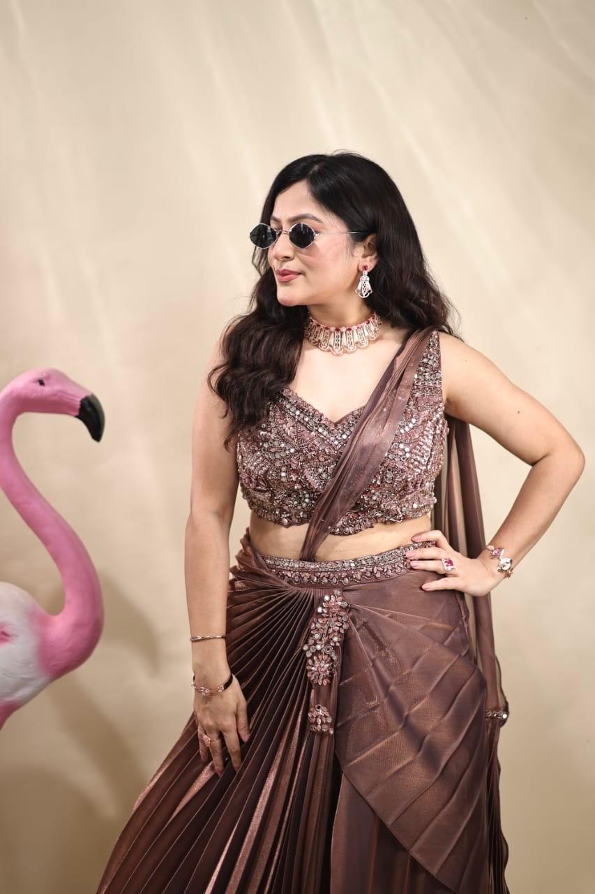 Stylish pleated skirt & crop top on organza tissue fabric