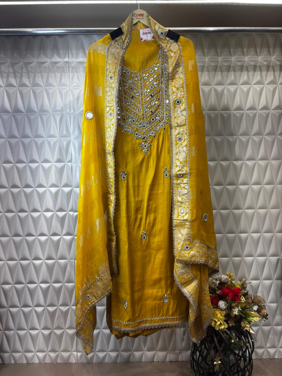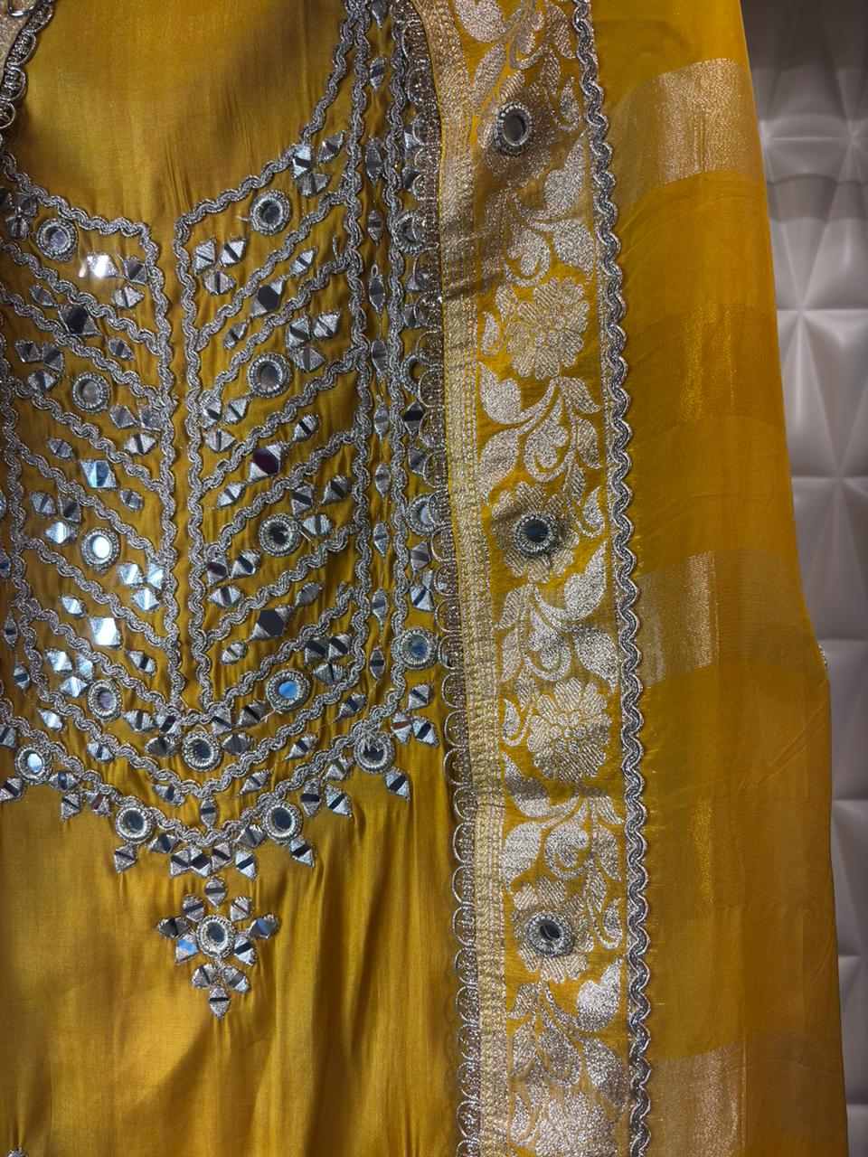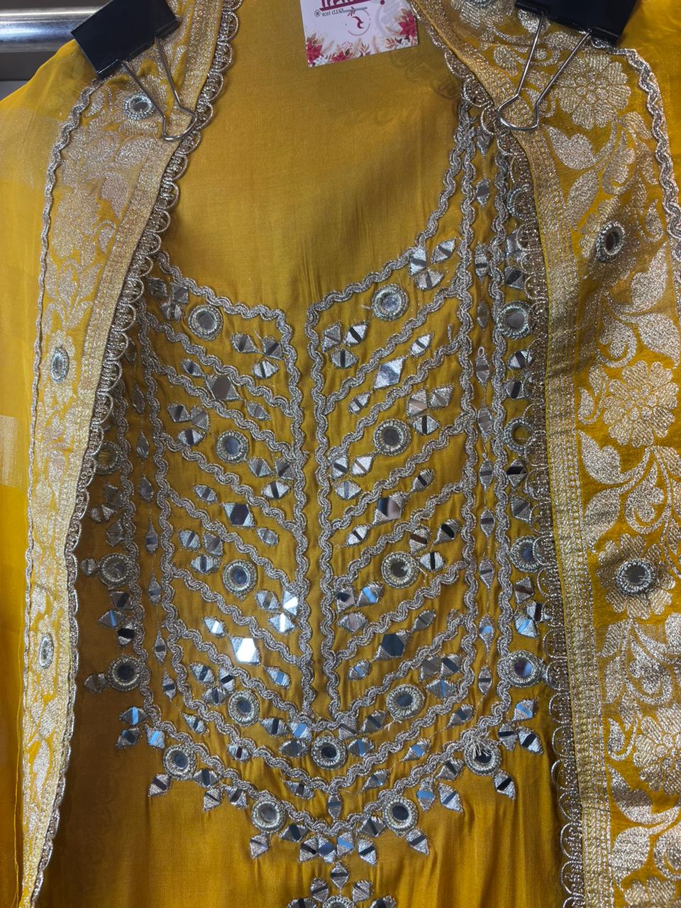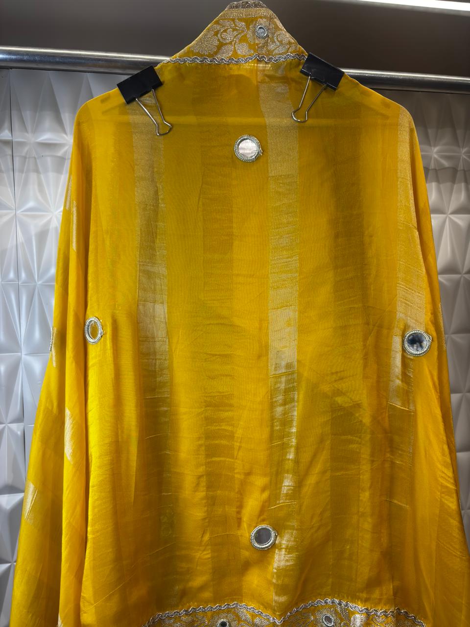 Radiate sunshine elegance in this yellow soft organza suit