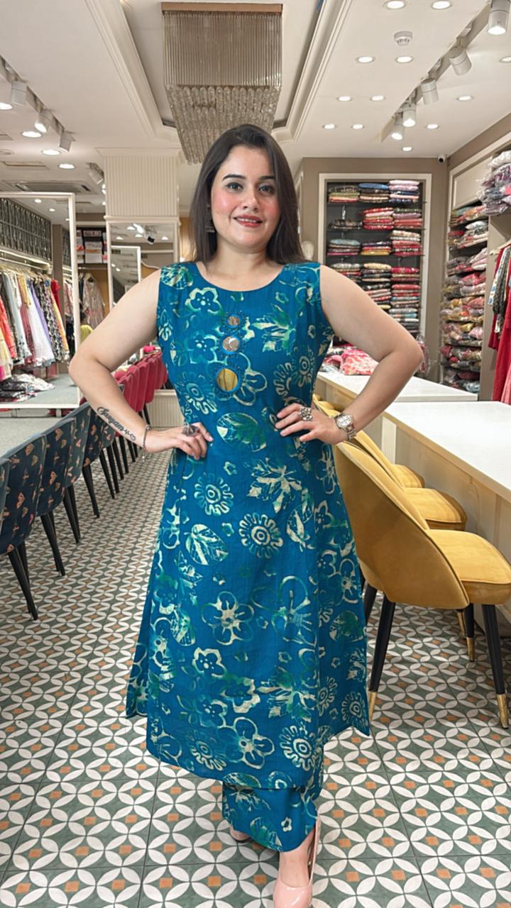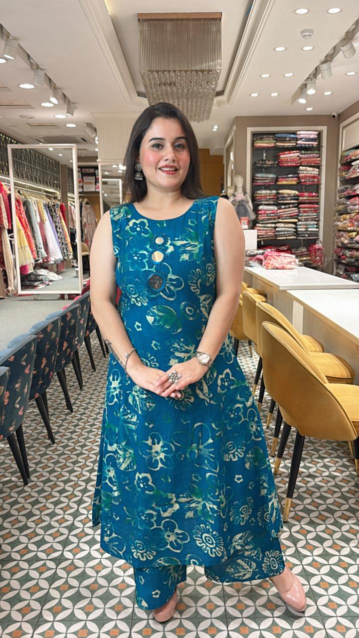 Elevate your ethnic wardrobe with this elegant ready made Kurta Set. Crafted from soft, comfortable fabric, this ensemble blends timeless charm with modern detailing. The kurta features delicate mirror and pearl work highlighting along the neckline, adding a subtle yet sophisticated sparkle. Paired with a stitched bottom in matching print, this outfit offers both style and ease—making it perfect for festive gatherings, family functions, or casual celebrations.