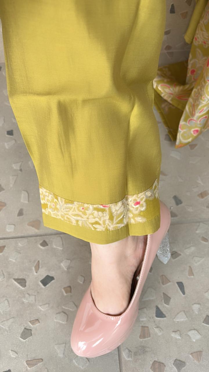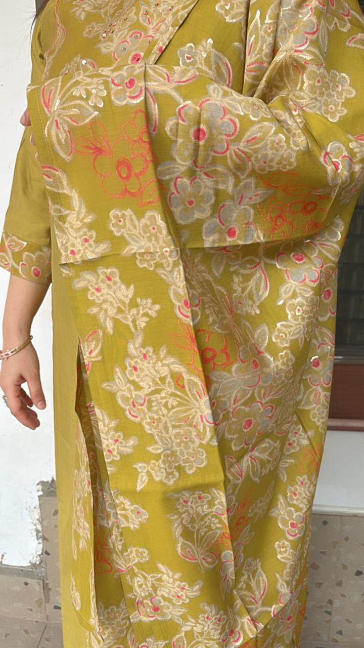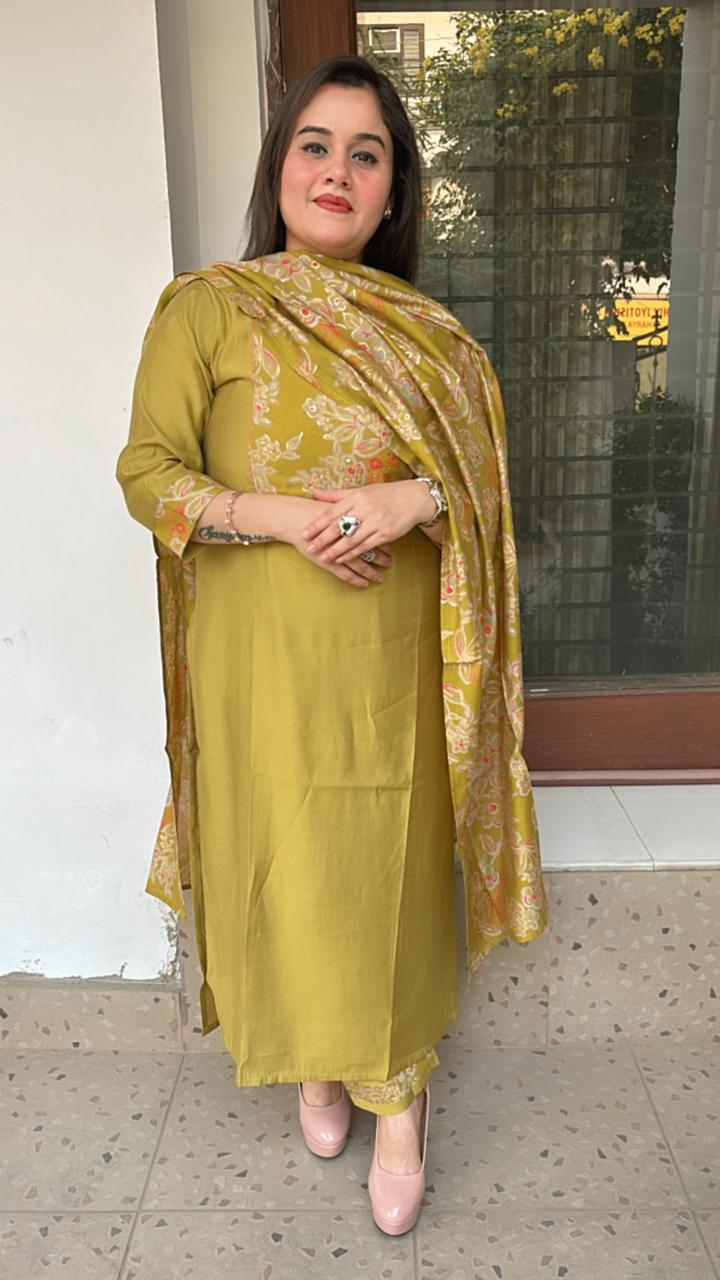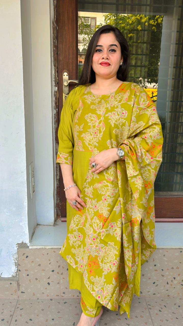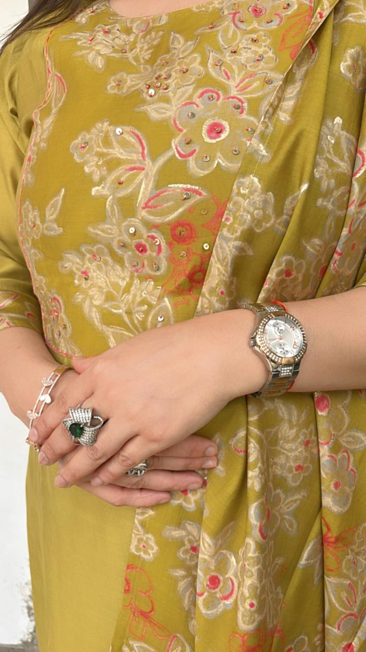Elevate your style with this mehndi green ready-made suit set